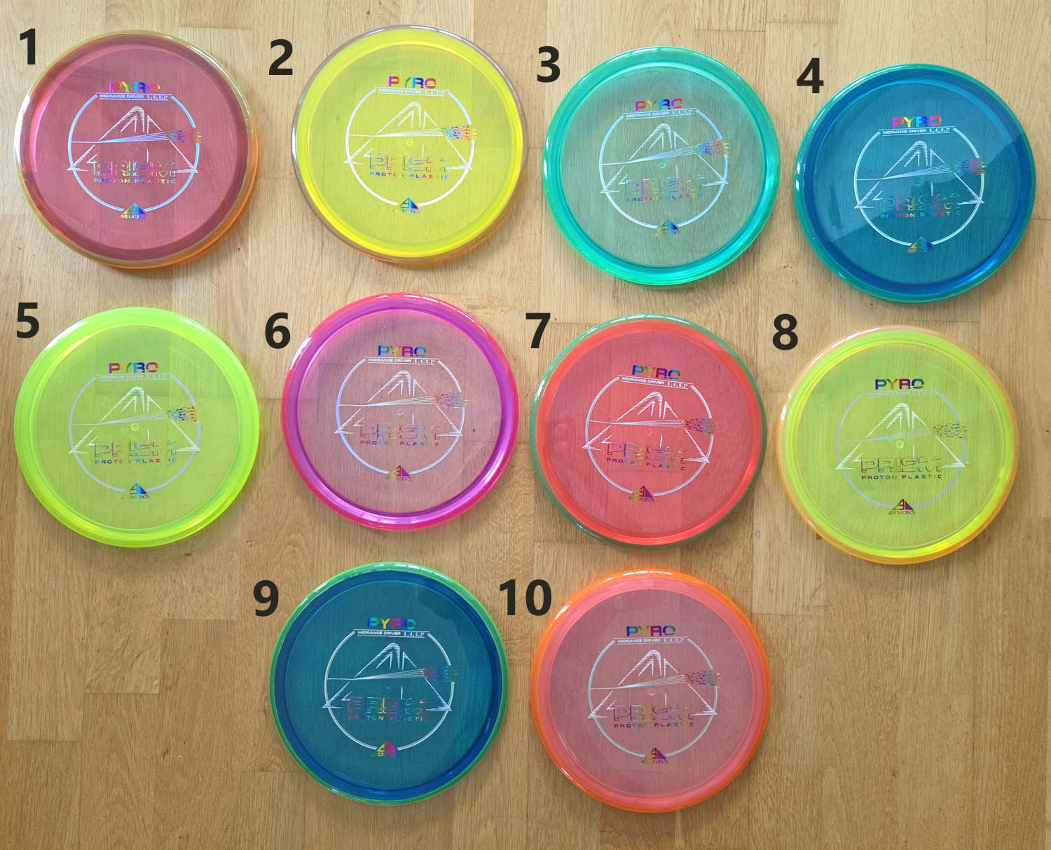 The Prism Pyro is debuting with a stock triple-foil stamp, that in combination with a Proton core and Prism rim produces a stunning dual-toned translucent disc. The Prism Proton Pyro was designed as Axiom’s first overstable Midrange with more glide than the MVP Deflector and a commanding stable finish. The Pyro has enough stability for consistent flights in strong winds and powerful throws without losing its line and turning off target.