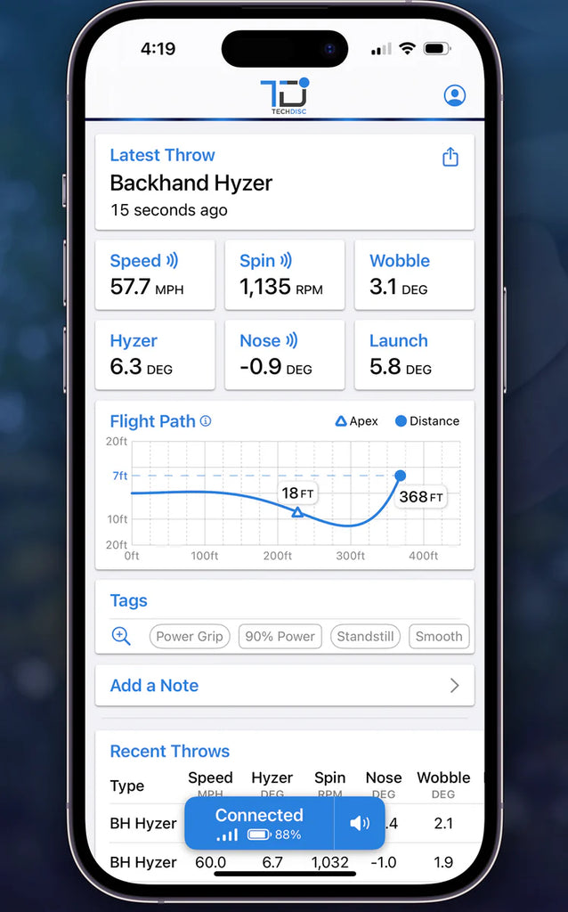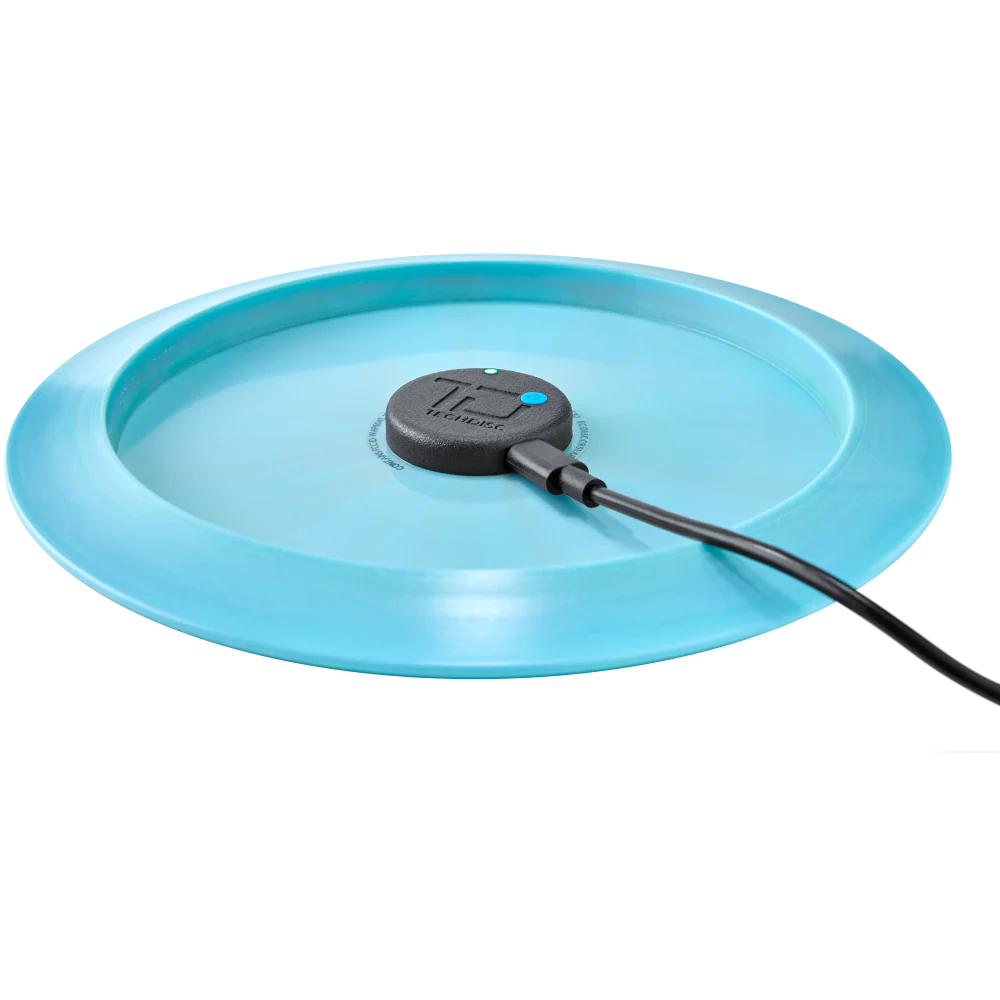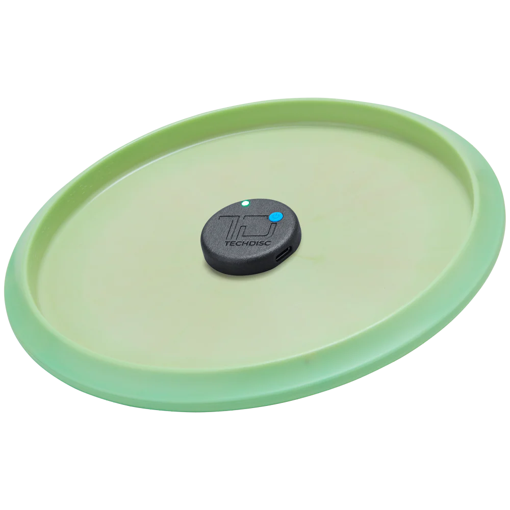 TechDisc is a small, sensor puck permanently attached to a golf disc and calibrated during assembly. The sensors capture the disc's full motion data.